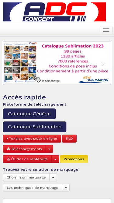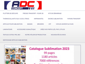 créé en 2008, adc concept est l'importateur et le distributeur incontournable pour tout type de presses transfert, plotters de découpe, imprimantes du petit au grand format (numérique et laser), tous les vinyles thermocollants flex et flock pour le marquage sur textile et autres supports, les vinyles adhésifs, les supports pour sublimation, les badges, ...