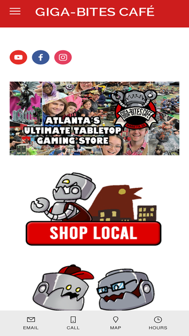 Play Tabletop Games in Marietta? Play at Giga-Bites Café! We are Northwest Atlanta's tabletop gaming store. We have a large retail selection of board games, miniature games, roleplaying games, and card games. We also have dozens of tables, and food/beverages (and beer!).