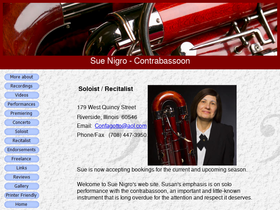 welcome to sue nigro's web site. susan's emphasis is on solo performance with the contrabassoon, an important and little-known instrument that is long overdue for the attention and respect it deserves.