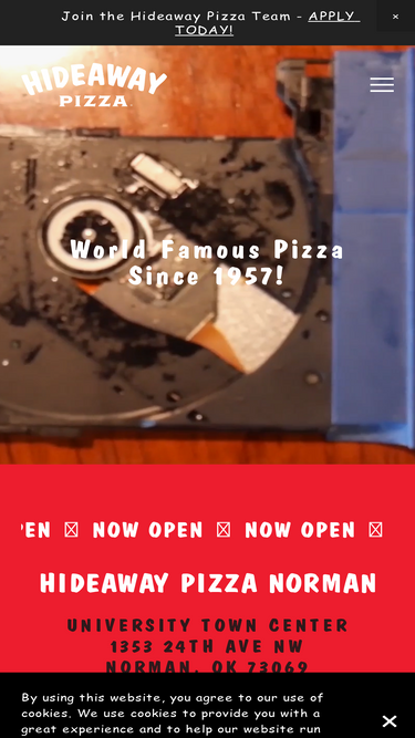 87%Hideaway Pizza offers a wide variety of delicious pizzas, pastas, salads, and more. Whether you're looking for a classic pepperoni pizza or something more…