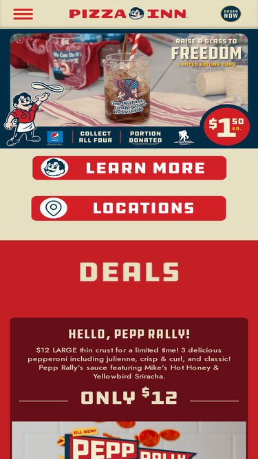 90%Visit Pizza Inn online to see our pizza buffet menu, order carryout or delivery, find a Pizza Inn location and learn about franchise opportunities.