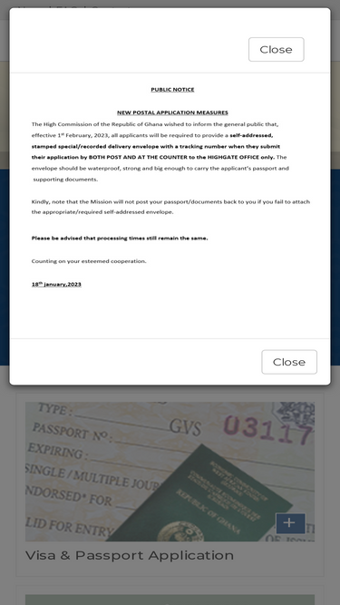 92%Ghana High Commission Ghana High Commission is set to co ordinate. promote and protect the national interests of Ghana within the United Kingdom and the Republic of Ireland. We also facilitate visa application for non Ghanaians seeking to visit Ghana and passport applications for Ghanaians resident in UK and Ireland only