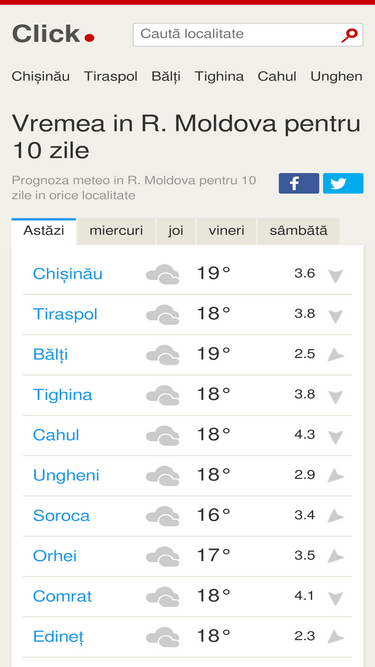 70%Prognoza meteo in Moldova pentru 10 zile in orice localitate