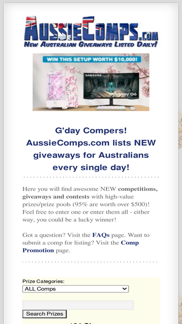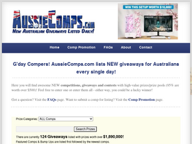 71%aussiecomps.com lists new high-value australian competitions, giveaways, contests and prize draws every day of the year.