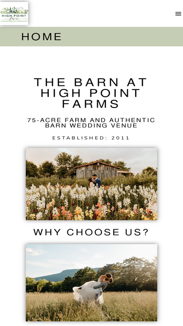 96%Our 75-acre farm offers a romantic setting for your wedding. We have mountain views and flower gardens, and we are conveniently located south of Chattanooga, TN, not far from Atlanta, GA. We offer both traditional and all-inclusive wedding packages, as well as weekend packages and elopement/micro wedding packages.