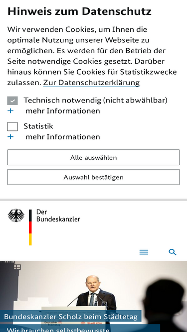 75%Der Internetauftritt von Bundeskanzler Friedrich Merz. Erfahren Sie hier mehr über den Kanzler, über seine Termine sowie die Aufgaben des Bundeskanzleramts.