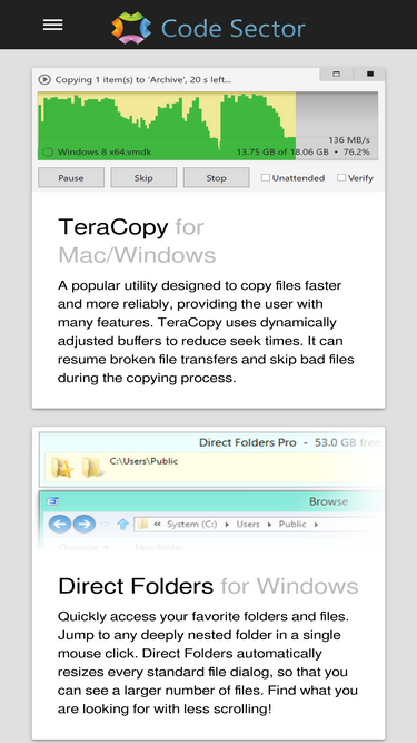 99%teracopy, direct folders and other applications by code sector.