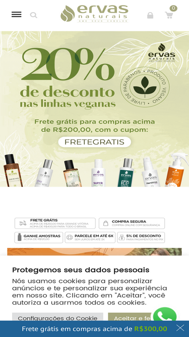 83%Descubra cosm�ticos naturais de alta qualidade para os seus cabelos. Shampoo, condicionador, m�scaras e mais! Entrega para todo o Brasil.