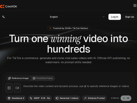 100%The #1 AI platform to create video ads, UGC, and AI videos on autopilot. Videotok is like your personal creative engineer that turns text into scroll-stopping TikToks, Reels, and YouTube Shorts. Using AI avatars, Data on what works,voice cloning, 30+ languages, a full video editor... and more.