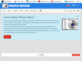 85%Edit your photos online on PhotoEditor.com for free. We support: resize, filters, effects, frames, text, shapes, sepia, black/white, crop, rotate and flip, online photo editing, photo editing, image editor, picture editor, online editor.