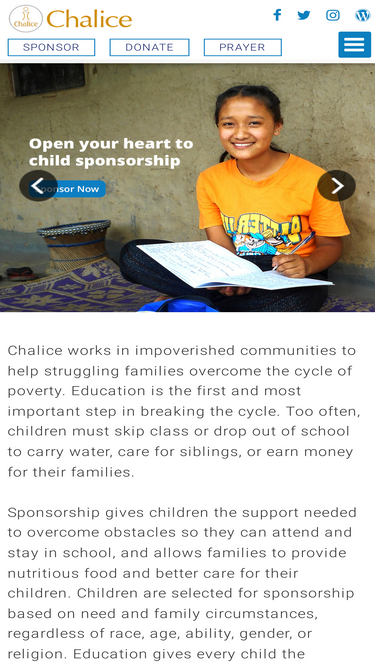 71%Chalice is a Canadian, Catholic international child sponsorship charity. For more than 30 years, our sponsors have supported children experiencing poverty to overcome obstacles, finish school, and have a hope-filled future.