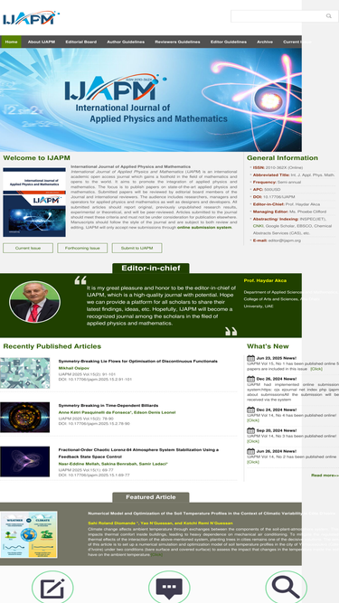 61%ijapm is an open access journal which focous on publishing original and peer reviewed research papers on all aspects of applied physics and mathematics