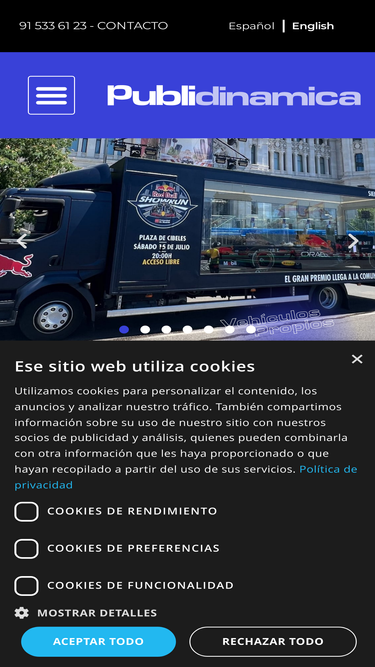 88%Empresa de vehículos publicitarios y roadshow. Eventos. España - Madrid - Barcelona - Valencia - Ibiza. Vehículos en propiedad.