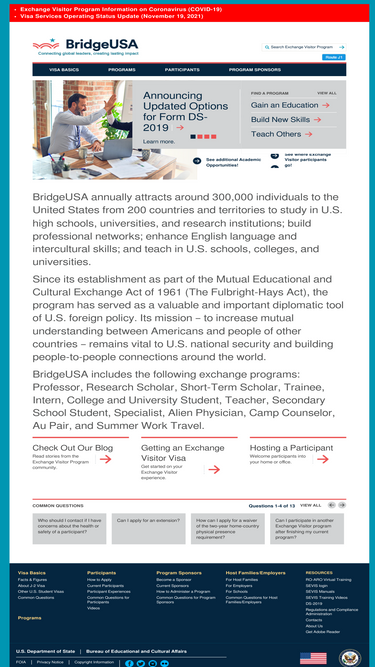 100%Video Transcript Learn more about the J-1 Visa Exchange Visitor Program’s Office of Private Sector Exchange Administration (OPA) and how program sponsors, exchange visitors, and interested parties can identify and report incidents and complaints. Every year the U.S. Department of State’s J-1 Visa Exchange Visitor Program brings over 300,000 foreign citizens to the United States […]