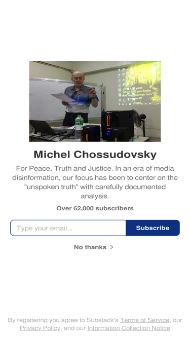 For Peace, Truth and Justice. In an era of media disinformation, our focus has been to center on the "unspoken truth" with carefully documented analysis. Click to read Michel Chossudovsky, a Substack publication with tens of thousands of subscribers.