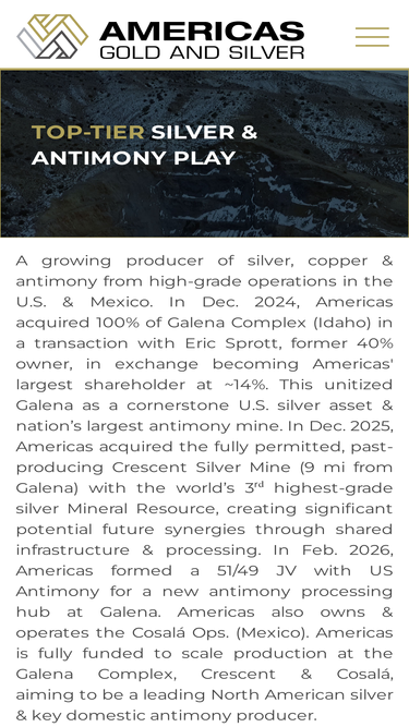 88%Americas Gold and Silver Corporation (TSX:USA) (NYSE MKT:USAS) is a leading Canadian-based junior silver producer with assets in the Americas.