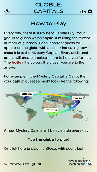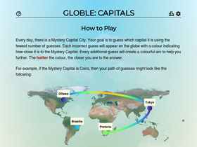86%Globle: Capitals is a daily guessing game. Use your geography skills to find the Mystery Capital City!