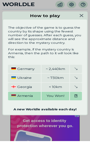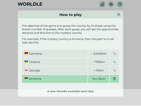 Test your knowledge in geography! Worldle is a game where you have to guess the country based only on its shape.