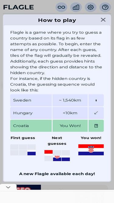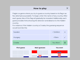 88%Play Flagle, the addictive online flag guessing game inspired by Wordle! Test your geography skills by identifying national flags daily, sharpen your knowledge, and challenge friends.