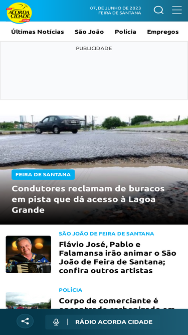 Fique informado sobre tudo o que acontece em Feira de Santana - Bahia. Notícias sobre política, cultura, esporte, entretenimento e mais.