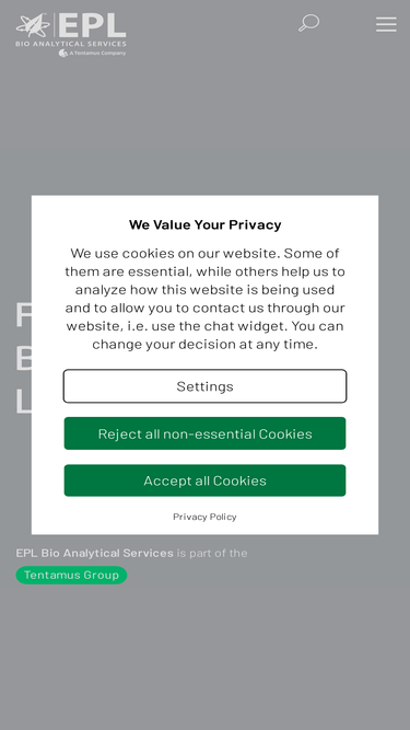 87%EPL Bio Analytical Services 9095 West Harristown Blvd Niantic, IL 62551-9752 Tel: 1-866-963-2143 … LIMITATION OF LIABILITY OWN CONTENTS The contents of the Tentamus website have been created with the utmost care. Nevertheless, Tentamus cannot guarantee the topicality, completeness and correctness of all pages. As a service provider, Tentamus is responsible for its own content on these pages in accordance with § 7 paragraph 1 of the Telemediengesetz and general laws. According to §§ 8, 9 and 10 of the Telemediengesetz, Tentamus is not obliged to monitor transmitted or stored information. As soon as Tentamus becomes aware of a concrete infringement, Tentamus removes this content immediately. Tentamus can therefore only assume liability with regard to a concrete violation of the law from the time of knowledge. LIMITATION OF LIABILITY FOR EXTERNAL LINKS Foreign contents on web pages of third parties, which can be reached via links from this Tentamus web page, are not appropriated by Tentamus. Tentamus has no influence on their content and can therefore accept no liability for their content. The provider of the respective information of the linked websites is responsible for the content and correctness of the information. At the time of linking, no legal violations were apparent for Tentamus. However, if Tentamus becomes aware of any legal infringements, the link, which is linking to the affected third-party website, will be removed immediately. COPYRIGHT Contents and works published on the Tentamus website are subject to copyright protection. Any reproduction, editing or distribution is prohibited without the prior written consent of the respective author. We would like to point out that data transmission over the Internet (e.g. communication by e‑mail) can have security gaps. A complete protection of data against access by third parties is not possible. The use of the contact data published within the scope of the imprint obligation by third parties for sending unsolic