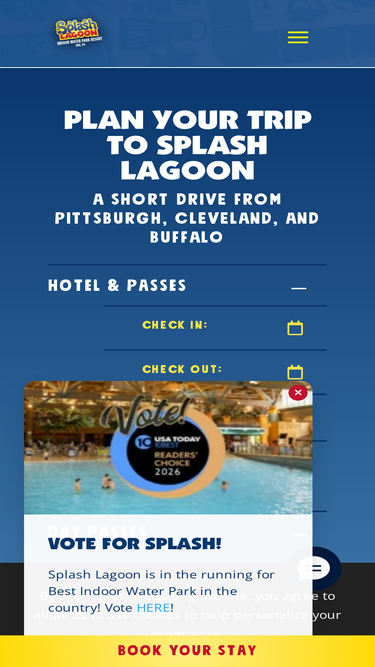 83%Fun for the whole family. Splash Lagoon Indoor Water Park Resort is filled with lots of attractions. Our water slides, arcade games, arcade VR, lazy river, wave pool, giant water bucket dump, and splash pad will have you booking your next stay in no time. Located in Erie, PA, just a short drive from New York, Ohio, and Pittsburgh. There are three hotels connected to our indoor water park. We hope to see you soon!