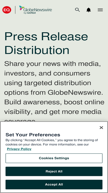 globenewswire helps you share news with media, investors, and consumers using targeted distribution options. build awareness, boost online visibility, and get more media coverage.