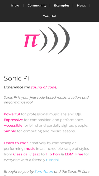 58%sonic pi is a new kind of instrument for a new generation of musicians. it is simple to learn, powerful enough for live performances and free to download.