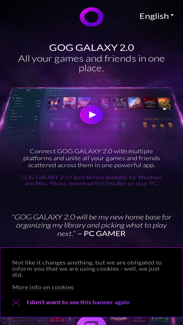 77%Connect GOG GALAXY 2.0 with other gaming platforms and bring together games you play and the friends you play them with in one powerful app. With GOG GALAXY 2.0 you won't have to juggle between multiple clients to access your games and see what your friends are playing. Join the Open Beta and help us shape the app!