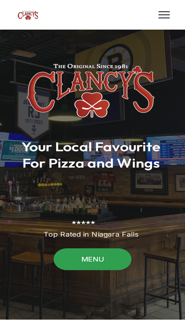 92%Welcome to Clancy's Restaurant & Sports Bar, a local favorite in Niagara Falls since 1981. Enjoy our famous pizza, chicken wings, and a variety of late-night options. Join us for a fun atmosphere where locals and visitors gather, just like the iconic Cheers!
