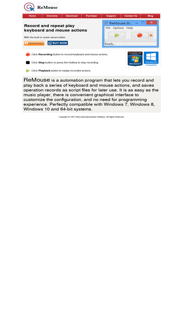84%remouse is a automation program that lets you record and play back a series of keyboard and mouse actions, and saves operation records as script files for later use. perfectly compatible with windows 7, windows 8, windows 10 and 64-bit systems.