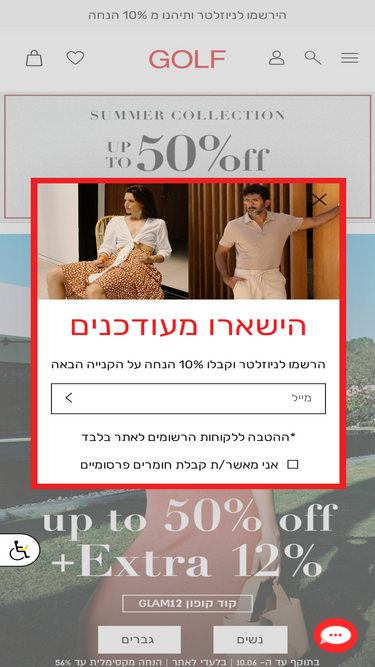 100%ברשת גולף קולקציית נשים וגברים טרנדית ואופנתית - מגוון פריטי לבוש, אביזרים משלימים והנעלה. לצפייה בקולקציה ורכישה אונליין, היכנסו