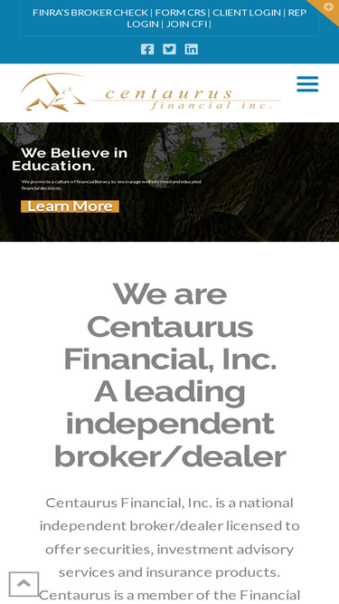 87%Centaurus Financial, Inc. is a leading independent broker/dealer licensed to offer securities, investment advisory services and insurance products nationwide.