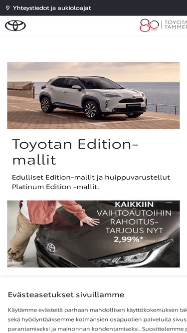 75%Löydät sivuiltamme Suomen suosituimman uusien autojen malliston sekä tarkastetut ja kunnostetut vaihtoautot. Katso myös rahoitus ja lisäpalvelut.