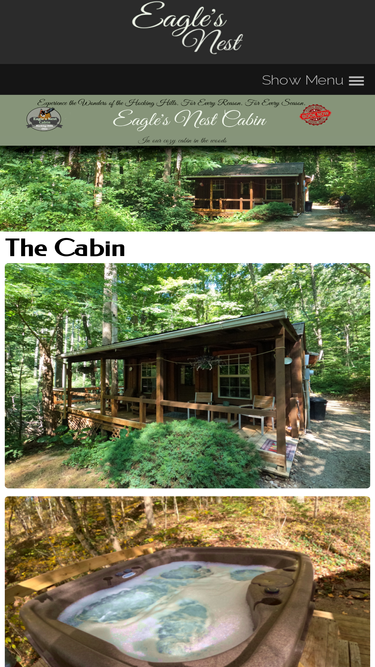eagle's nest cabin in the hocking hills of ohio offers a secluded cabin getaway on 9 forested acres with a hot tub just minutes from ash cave, old man's cave, and cedar falls.