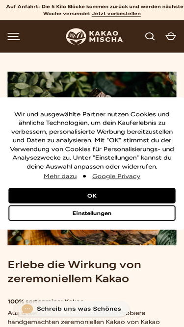 81%Feinste, indigene Grand Cru Criollo Kakaopaste aus biologischem Anbau für deine Kakaozeremonie Unser Satipo wird von den Asháninka, einer indigenen Gruppe in Ost-Peru und West-Brasilien, in naturnahen Waldgärten angebaut. Dabei gehört diese Grand Cru Sorte wie andere zu den Ur-Kakaos auf dieser Welt. Das bedeutet, dass der genetische Stamm dieser Sorte sehr alt ist und sich andere Kakaosorten aus diesem abgeleitet haben. Die Kakaomasse oder auch Kakaopaste wird aus der Bohne in mechanischer Kaltpressung gewonnen, ohne dass hier die Kakaobutter oder andere Bestandteile abgetrennt werden. Du bekommst also 100 % puren Kakao. Er ist durch seine Form als Drops sehr gut portionierbar und sowohl für eine Kakaozeremonie mit vielen Teilnehmern, in der Gastronomie oder zum herstellen eigener, hochwertiger Schokolade geeignet. URSPRUNGAngebaut, geerntet und schonend verarbeitet von den Asháninka in der Region Satipo, Peru. Persönliche Beziehungen zu unseren Anbaupartnern ermöglichen einen fairen, direkten und transparenten Handel nach höchsten ethischen Prinzipien frei von Kinderarbeit. ZUTATENKakaopaste aus 100% kontrolliert biologischem Anbau. Kann Spuren von Nüssen enthalten. Einhaltung des EU Grenzwertes für Cadmium von 0,8 mg/kg. Ein aktuelles Analysezertifikat findest du hier. ANWENDUNGFür die Zubereitung von traditionellen Kakaogetränken, zum Backen oder für die Herstellung hochwertiger Schokolade. PREMIUMQUALITÄT • Vegan• Frei von Zusatzstoffen• Schonend verarbeitet• Von Natur aus glutenfrei• Handverpackt im Schwarzwald DE-ÖKO-006 | Nicht-EU-Landwirtschaft