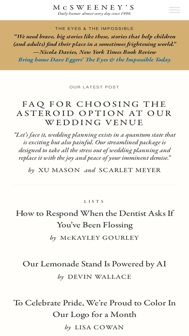 - Arts & Entertainment > Humor