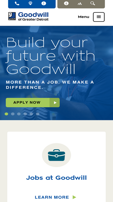 80%You Shop. You Donate. Someone Works. At Goodwill Mid-Michigan we assist individuals with barriers to employment in making the transition to independence and self-sufficiency. Through your donations, then the sale of those goods, we able to fund job training programs to help put people to work.