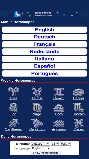 84%free weekly horoscopes and astrology readings for your zodiac sign in multiple languages. Horoscope by e-mail.
