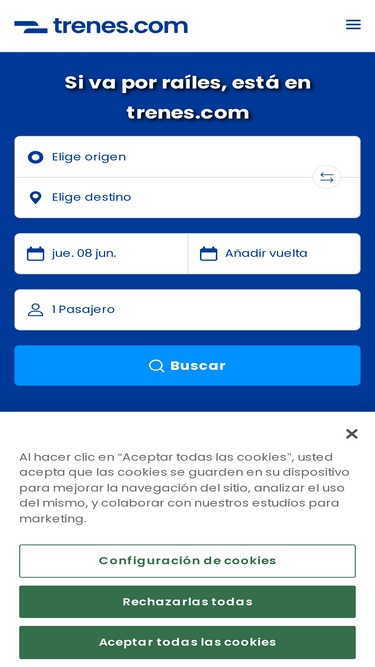 80%distribuidores oficiales: renfe, ave, avlo, ouigo, iryo y muchos más… busca, compara y compra tus billetes de tren al mejor precio en los horarios que elijas. ahora comprar tus billetes de tren es fácil, rápido y seguro