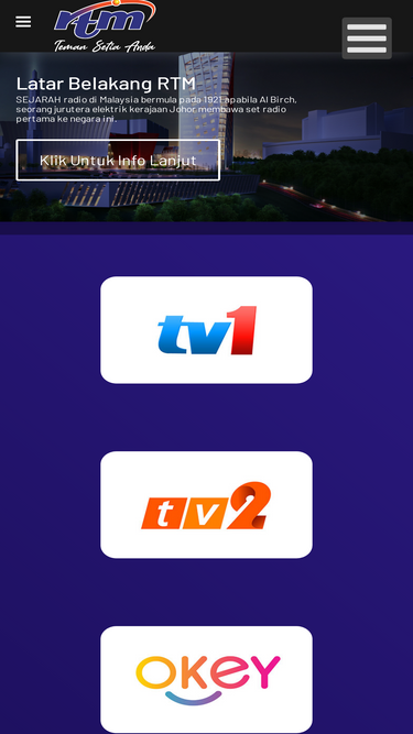 96%radio televisyen malaysia (rtm) atau jabatan penyiaran malaysia ialah stesen penyiaran awam milik kerajaan malaysia yang memiliki dan mengendalikan beberapa saluran radio dan saluran televisyen.