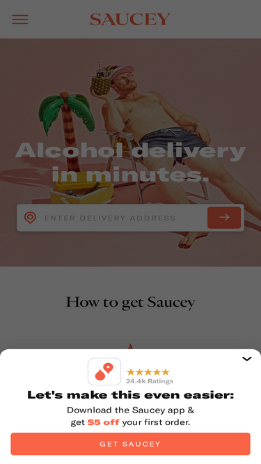 100%Discover where Saucey delivers alcohol and tobacco. Get beer, wine, liquor, nicotine products, snacks, and more all delivered right to your door in as few as 30 minutes.