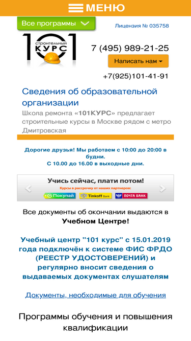 101курс. строительные курсы в москве. учебные курсы отделочных, сантехнических работ, курсы строительных, рабочих специальностей, обучение рабочим профессиям, курсы строителей. дополнительное образование и профессиональное обучение строительству.