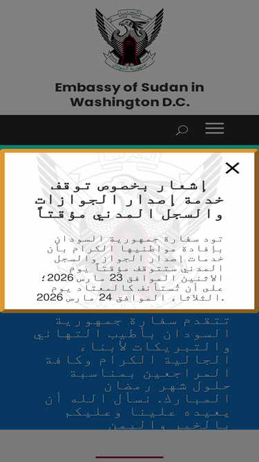 96%Welcome to the official Embassy of Sudan in Washington D.C. website. Explore a range of consular services including passport renewal, visas, and document authentication. Learn about Sudanese culture, tourism, and investment opportunities. Stay updated with the latest news and access important contact information for all your inquiries
