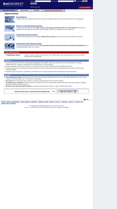 100%b2gmarket lists government bid, government contract, government bids, government contracts, bid contract award,s bid forecasts, sealed bids, contract histories and contracts from federal governments, state governments and local government agencies.