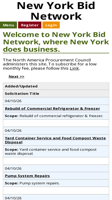 85%government bids are received from hundreds of government agencies in new york state. the new york state contract reporter offers bid opportunities and specifications for viewing, downloading and printing.