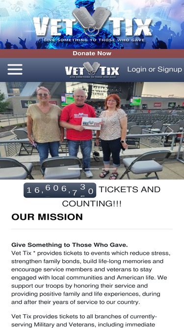 83%Support Veteran Tickets Foundation by providing funds to purchase tickets to a great event.