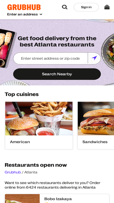 free online ordering from restaurants near you! with more than 30,000 restaurants in 500+ cities, food delivery or takeout is just a click away. because with grubhub: click, click, food!