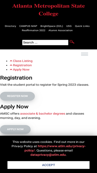 100%atlanta metropolitan college (amc) is a four-year unit of the university system of georgia. programs of study are offered on a year round basis during the day, evening, weekend, and online courses.