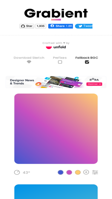 uiGradients is a handpicked collection of beautiful color gradients for designers and developers.